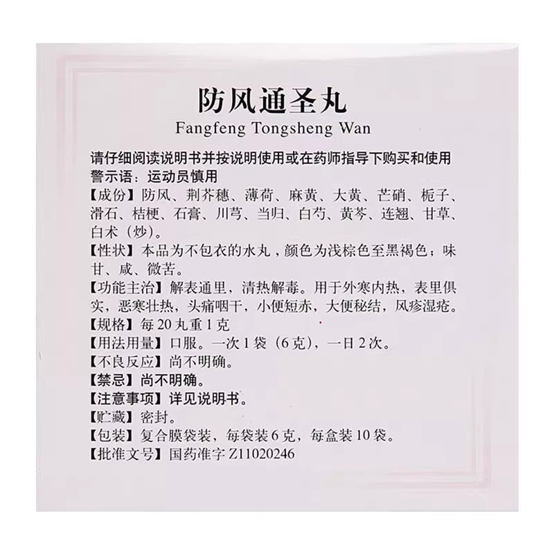 防风、荆芥穗、薄荷、麻黄、大黄、芒硝、栀子、滑石、桔梗、石膏、川芎、当归、白芍、黄芩、连翘、甘草、白术(炒)