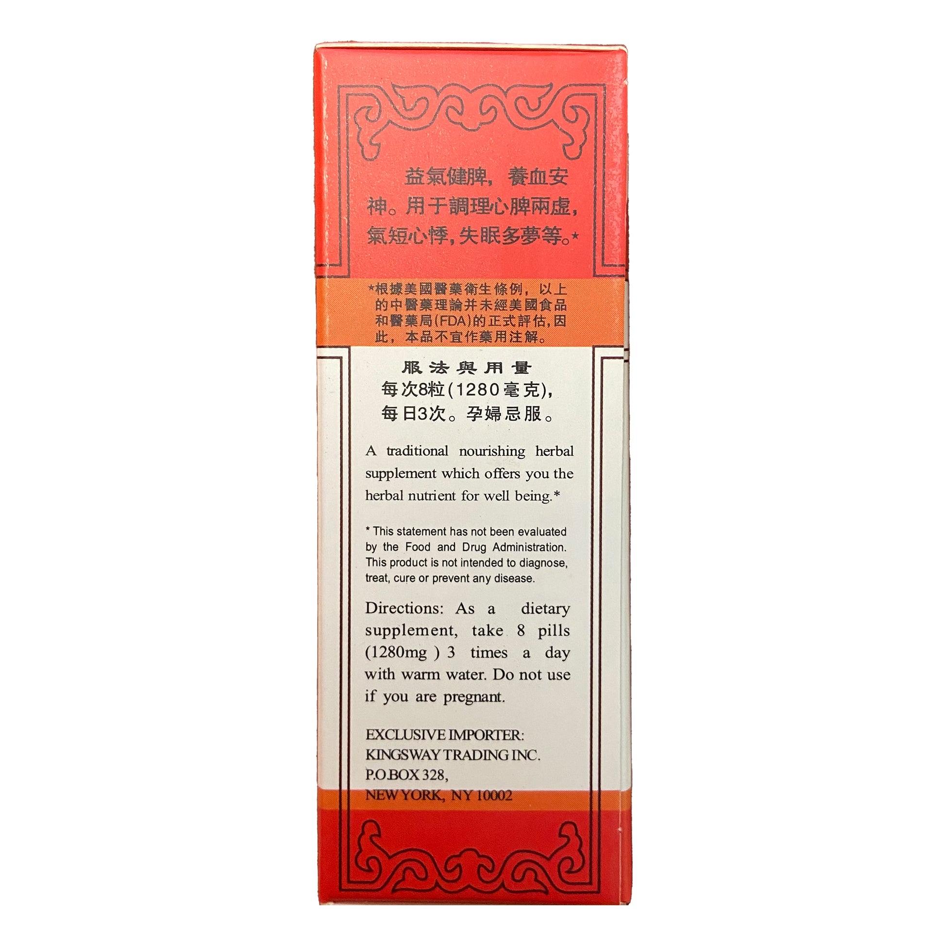 Take 8 pills per dose, three times daily, with warm water, or as directed by a physician.