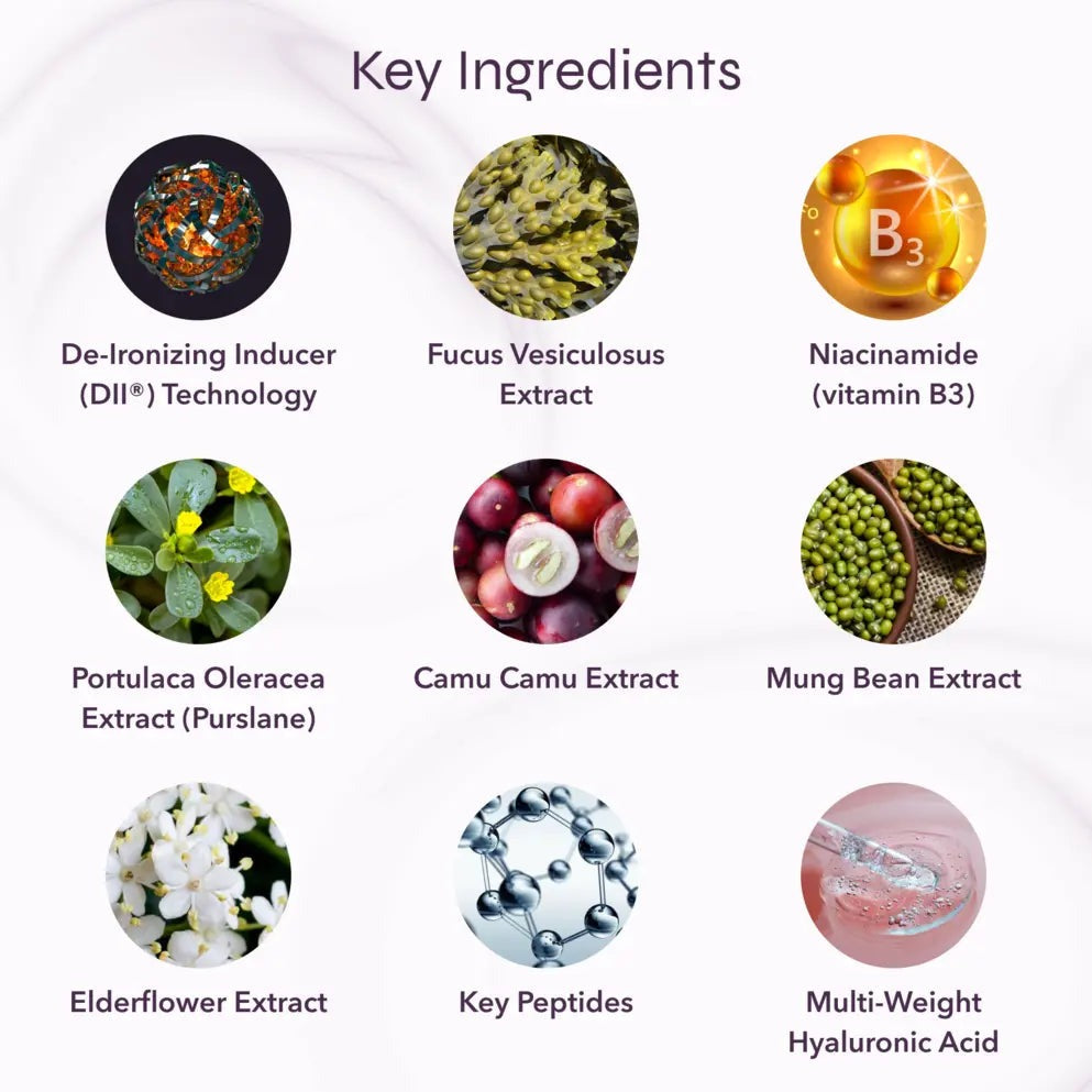 海藻精华成分,支持肌肤焕亮,改善暗沉肤色外观。